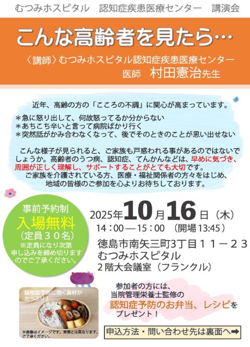 【10/16】むつみホスピタル認知症疾患医療センターから講演会開催のお知らせ