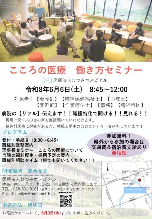 6月6日(土)8時45分から「こころの医療 働き方セミナー」を開催いたします!